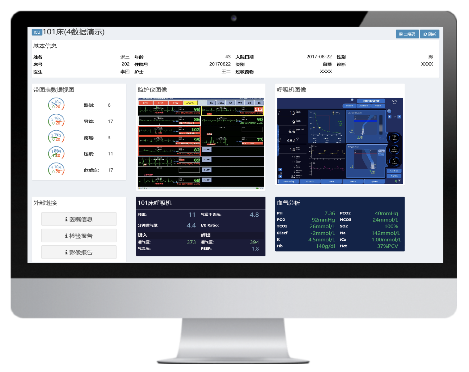 實時呈現(xiàn)病人體征參數(shù)、變化趨勢,診療設備參數(shù),同時接入醫(yī)囑、檢驗結(jié)果數(shù)據(jù),一體化呈現(xiàn)存儲和回溯,方便醫(yī)護急救、會診、查房